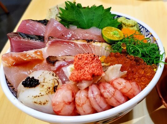 一開幕就吸引眾多顧客前往享用。海鮮丼飯食材選用來自日本空運食材及崁仔頂、大溪漁港等由師傅嚴選魚貨,提供熟食丼飯、蒸蛋、手捲、一品料理等餐點及季節性的限定丼飯,每日享有當天現煮的味噌湯,免費提供內用顧客享用,而且無限續飯續湯,讓消費者吃好又吃飽。